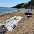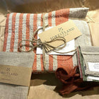 10x heavyweight softened linen samples. (Natural, Charcoal gray, Camel, Forest green, Burnt orange, White/Natural stripes, Olive, Ocean, Terracotta, Natural with black stripes)