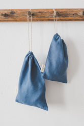 Cornflower blue linen bread bag. Beautifully made of high-quality European linen with a natural texture.