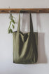 Forest green linen tote bag