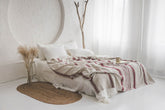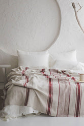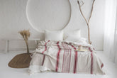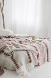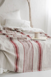French style linen bedspread with cherry red stripes. Beautifully made of high-quality European linen with a natural texture. Give a warm feeling to your bedroom!