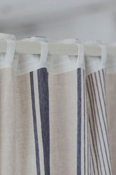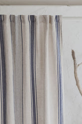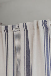 Our French-style linen curtain with blue stripes is crafted from 100% European linen for a soft, breathable feel and an elegant drape. The natural linen base and classic stripe design bring a relaxed, coastal-inspired look to any room.