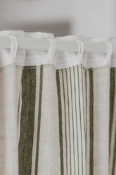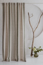 Our French-style linen curtain with green stripes is crafted from 100% European linen for a soft, breathable feel and a beautifully relaxed drape. The natural linen base paired with subtle green stripes brings a fresh, countryside charm to any space.