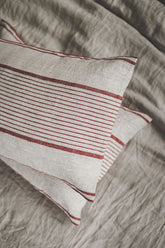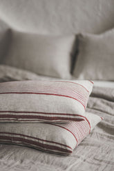 Infuse your space with timeless French charm with this handcrafted linen pillowcase featuring classic cherry red stripes. Made from 100% natural linen, it offers a soft, breathable texture that becomes even cozier with every wash. The bold yet elegant striped design adds a vintage-inspired touch, perfect for creating a warm and inviting atmosphere in your bedroom or living space. Designed for both beauty and function, it features an envelope closure for a seamless, tailored look. Individually made with care, ensuring quality and character in every detail. Available in various sizes.