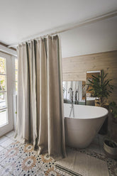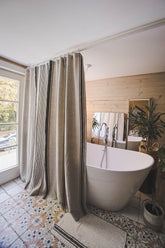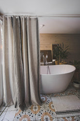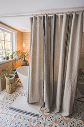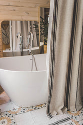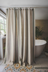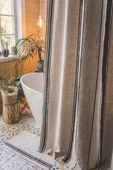 This French-style linen shower curtain isn’t just beautiful — it’s functional too. Made from durable natural linen with classic black stripes, it’s ideal for everyday use. Pairs well with a waterproof liner for extra protection.
