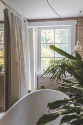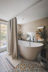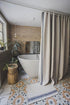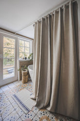 This French-style linen shower curtain isn’t just beautiful — it’s functional too. Made from durable natural linen with classic blue stripes, it’s ideal for everyday use. Pairs well with a waterproof liner for extra protection.