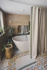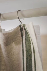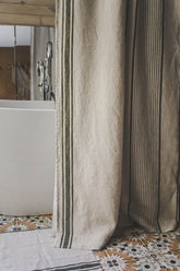 This French-style linen shower curtain isn’t just beautiful — it’s functional too. Made from durable natural linen with classic green stripes, it’s ideal for everyday use. Pairs well with a waterproof liner for extra protection.