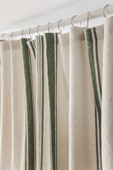 French style linen shower curtain with green stripes