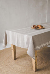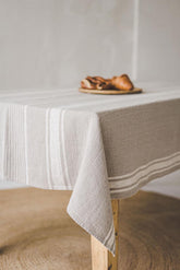 French style linen tablecloth with natural stripes