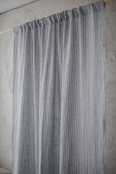 Grey linen curtain with black stripes
