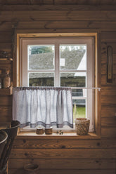 Add simple elegance to your space with this grey linen café curtain featuring delicate black stripes. Made from 100% natural linen, it provides privacy while letting in soft, filtered light. The subtle stripe design pairs perfectly with farmhouse, modern, or rustic decor.