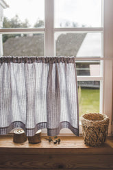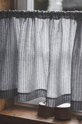 Grey with black stripes linen cafe curtain