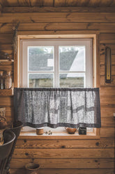 Add bold elegance to your home with our heavyweight linen café curtain in charcoal gray. Woven from 100% natural linen, this curtain brings a rich, modern tone and beautiful texture to your windows.