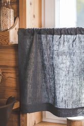 Heavyweight charcoal gray linen cafe curtain