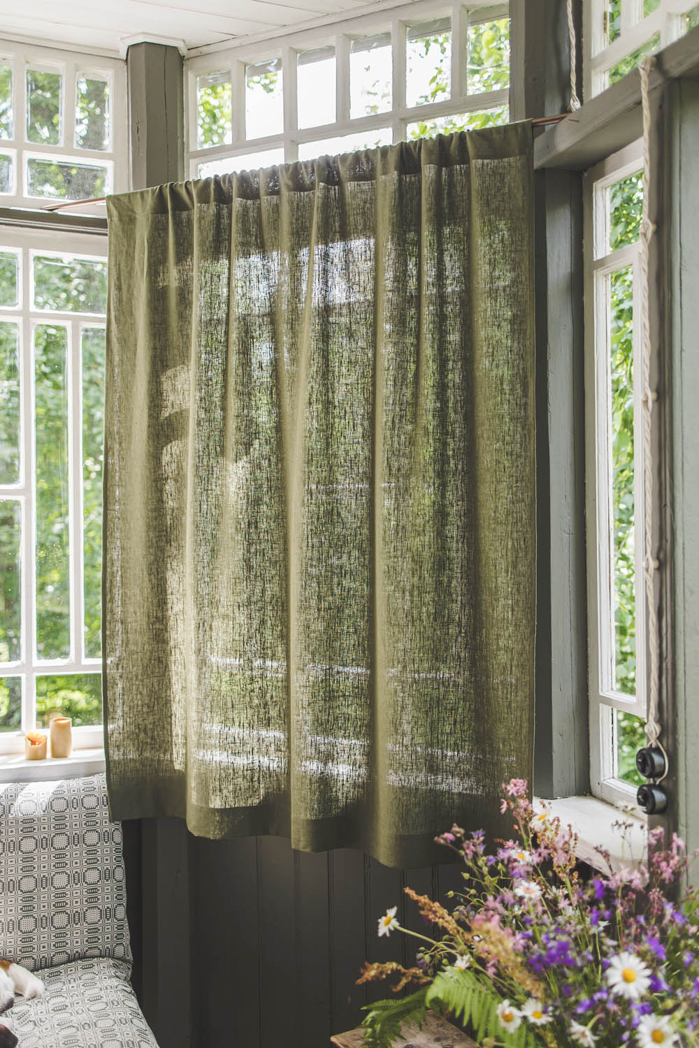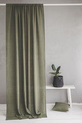 Heavyweight forest green linen curtain