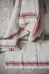 French style linen bath mat with cherry red stripes