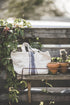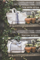 Linen handbag with blue stripes