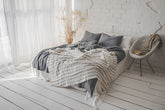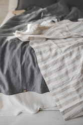 Linen throw blanket with white/natural stripes
