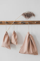 Misty rose linen bread bag. Beautifully made of high-quality European linen with a natural texture.