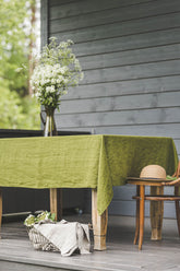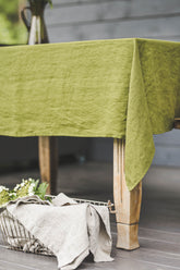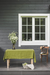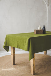 Moss green linen tablecloth