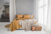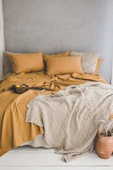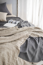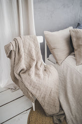 Natural heavyweight waffle linen throw blanket