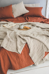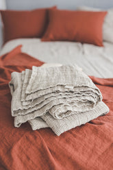 Heavyweight waffle linen throw blanket. Beautifully made of high-quality European linen with a natural texture.