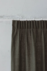 Bring the calm of nature indoors with our pencil pleat linen curtain in forest green. Made from 100% natural linen, it offers a soft texture and a classic pleated top for a clean, tailored look. The deep green shade adds warmth and depth - ideal for cozy living rooms, bedrooms, or rustic-inspired spaces.