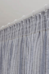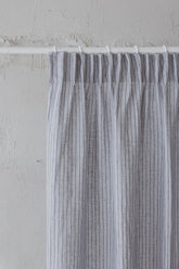 Add a modern, rustic touch to your space with our pencil pleat linen curtain in grey with black stripes. Made from 100% natural linen, it features a soft, textured weave and a classic pleated top. The subtle grey base with bold black stripes creates a stylish, timeless look - perfect for kitchens, living rooms, or relaxed farmhouse interiors.