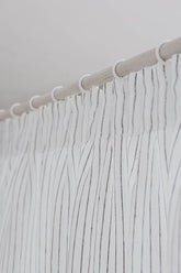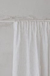Bring a clean, modern look to your home with our pencil pleat linen curtain in white with black stripes. Made from 100% natural linen, this curtain features a soft texture and a classic pleated top. The crisp white base with narrow black stripes adds a touch of contrast - perfect for kitchens, hallways, or minimalist interiors.