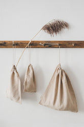 Sand linen bread bag. Beautifully made of high-quality European linen with a natural texture.