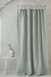 Tie top frosty green linen curtain