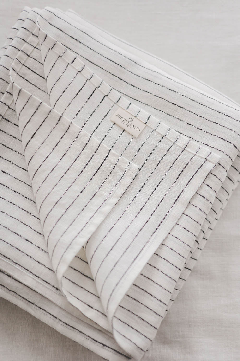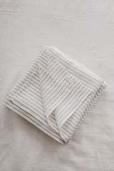 White linen flat sheet with black stripes