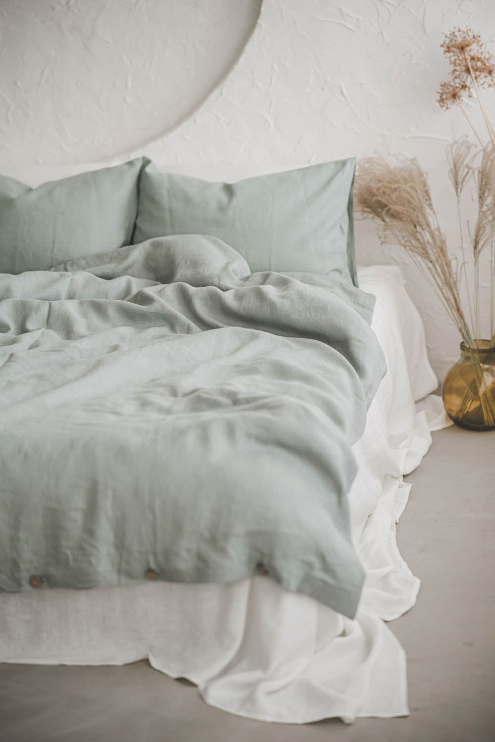 Frosty green linen duvet cover with buttonsFrosty green linen duvet cover with buttons- Regular price