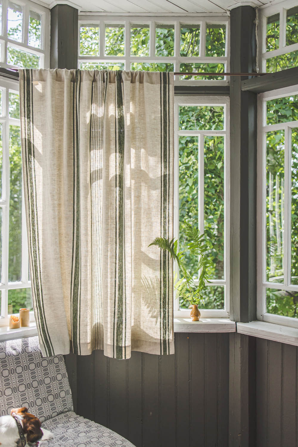 French style linen curtain with green stripesFrench style linen curtain with green stripes- Regular price