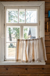 Morning light was made for our French Style Linen Cafe Curtain with Classic Golden Stripes. Made from 100% natural linen, this softly gathered half-curtain lets sunlight filter through its semi-sheer weave, casting a warm, honeyed glow across the room while keeping the lower half of your window beautifully dressed. A simple, timeless detail for any cottage, farmhouse, or rustic interior. Simply thread onto a rod and enjoy.