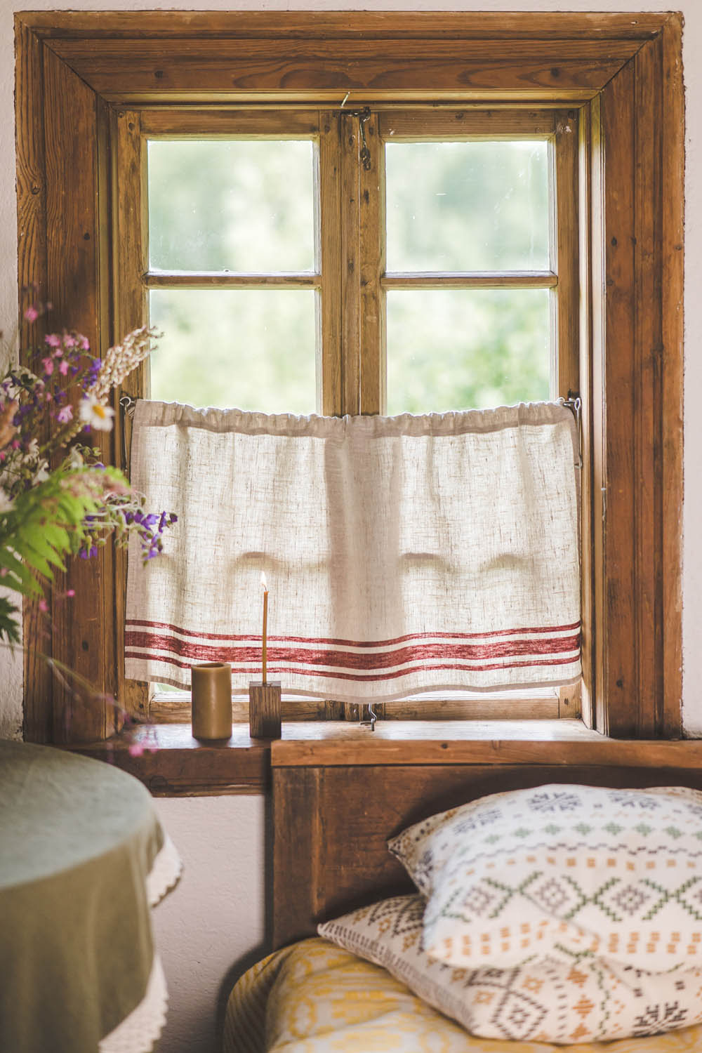 We recommend machine washing your linen café curtains in cold or lukewarm water, up to 104°F (40°C), using a mild detergent. Avoid overloading the washing machine and never use bleach. After washing, air dry or tumble dry on low heat, and remove from the dryer while slightly damp to minimize wrinkles. Ironing is not necessary, but if desired, use steam and medium heat settings.