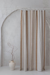 Softly structured and naturally luminous, this French-style linen curtain is woven from 100% pure linen and traced with subtle golden stripes that shift gently with the light. The warm gold threads bring a quiet richness to the fabric, while the linen’s organic texture keeps the look relaxed and authentic. Rooted in classic French interiors, it feels calm, lived-in, and quietly elegant.
