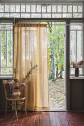 Our Wheat sheer linen curtain is crafted from 100% European linen, featuring a warm, golden-beige tone that gently filters light and creates a cozy, inviting atmosphere. The sheer weave allows natural sunlight to flow through while adding a soft, elegant texture to your space.