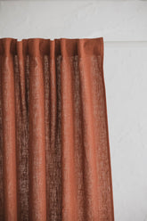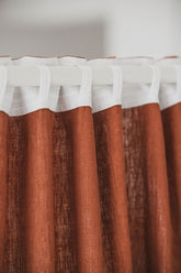 Heavyweight burnt orange linen curtain with multifunctional heading tape