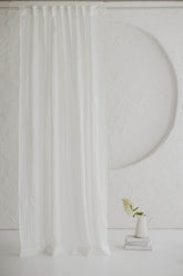 Our Off-White sheer linen curtain is made from 100% European linen, offering a light and airy drape that softly filters sunlight while preserving privacy. The natural off-white shade blends effortlessly with any interior, adding brightness and elegance to your space.