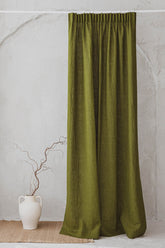 Bring the beauty of nature indoors with our pencil pleat linen curtain in moss green. Made from 100% natural linen, it features a soft texture and a classic pleated top for a clean, timeless look. The earthy moss green shade adds warmth and calm - perfect for living rooms, bedrooms, or nature-inspired spaces.