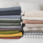 10x heavyweight softened linen samples. (Natural, Charcoal gray, Camel, Forest green, Burnt orange, White/Natural stripes, Olive, Ocean, Terracotta, Natural with black stripes)