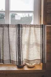 Add a touch of rustic charm to your home with this French-style linen café curtain, featuring timeless black stripes. Made from 100% natural linen, this curtain provides a perfect balance of privacy and light, creating a cozy, inviting atmosphere. Ideal for kitchens, bathrooms, or any room needing a subtle, elegant accent, this curtain’s breathable fabric and classic design will bring a soft, country-inspired aesthetic to your space.