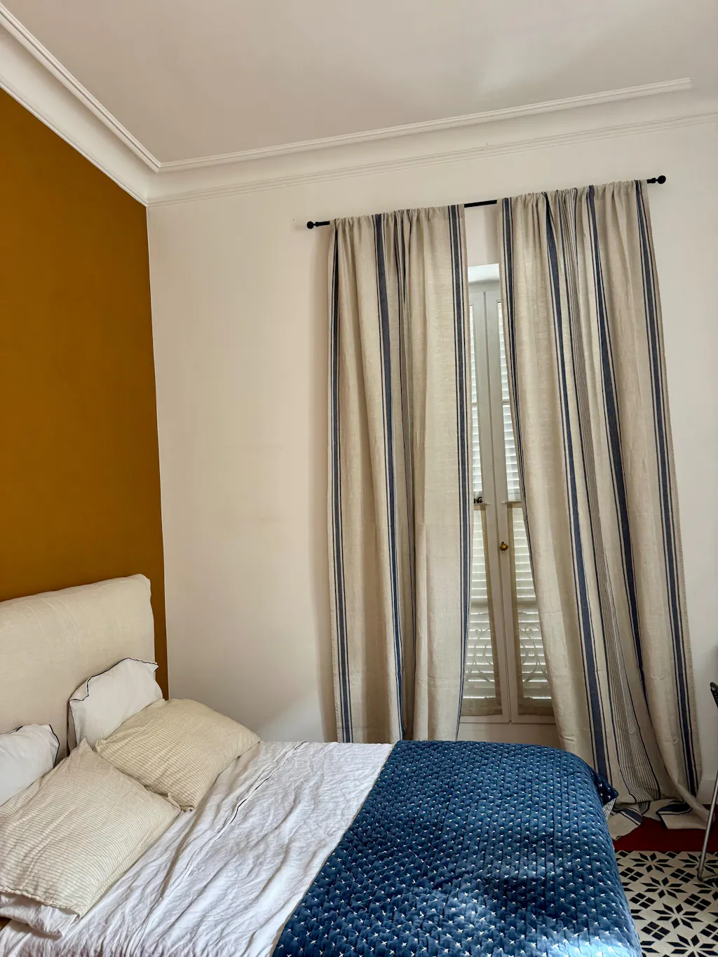 French style linen curtain with blue stripes