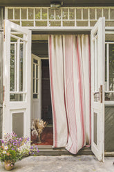 Elevate your space with our French Style Linen Curtain, adorned with charming cherry red stripes. Made from 100% natural linen, this curtain offers a beautiful blend of elegance and rustic appeal. The rich red stripes add a vibrant yet refined touch, perfect for brightening any room. Designed with a rod pocket for effortless hanging, it brings a cozy, inviting ambiance to your home. Available in multiple sizes, this curtain combines timeless French style with the quality and breathability of premium linen.