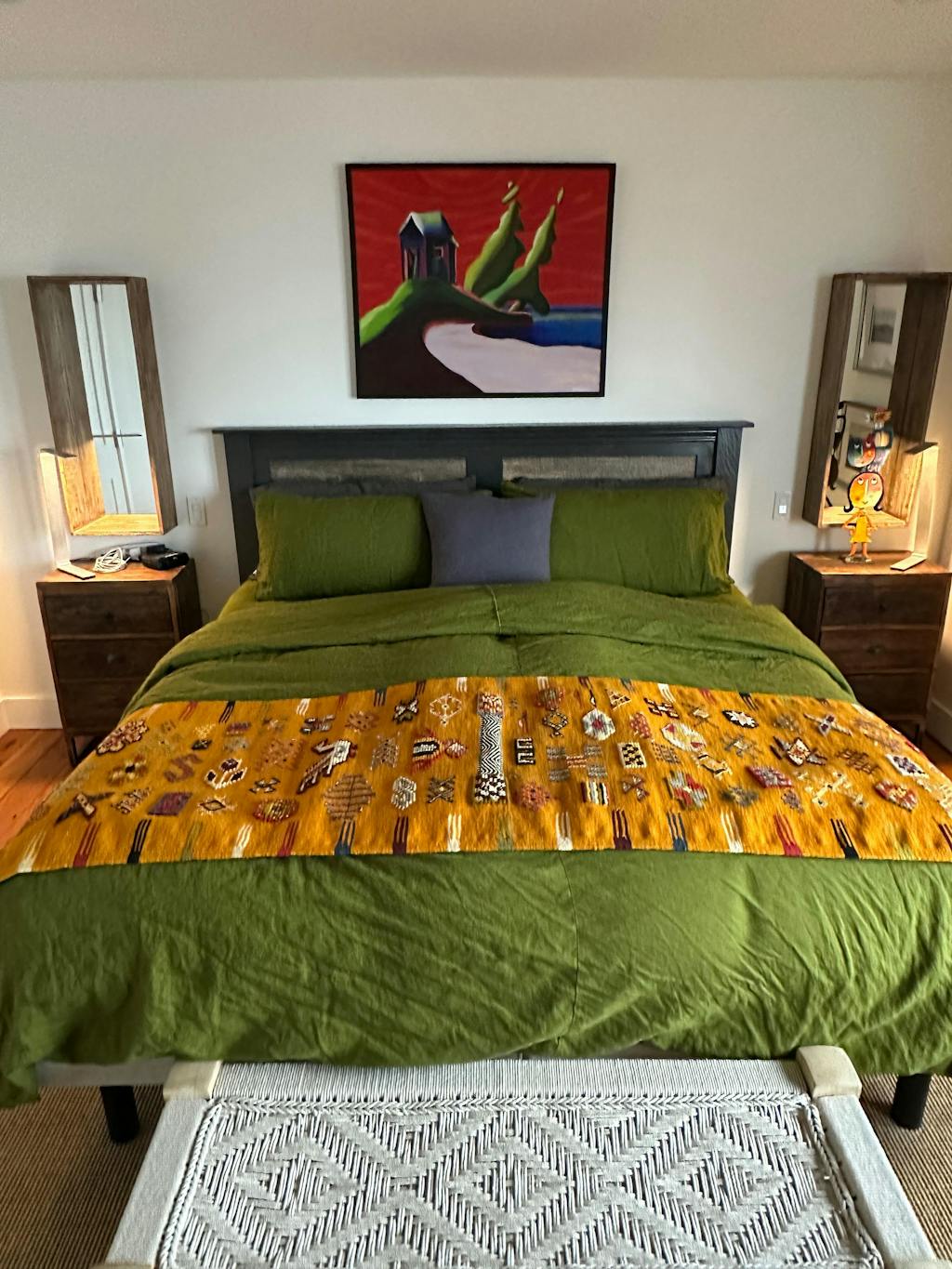 Moss green linen duvet cover with buttons
