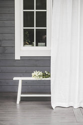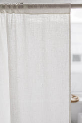 Brighten your space with the crisp elegance of our Off-White Linen Curtain. Made from 100% natural linen, this curtain features a soft off-white color that adds a touch of timeless sophistication to any room. The airy, breathable fabric provides a gentle diffusion of light, creating a serene and inviting atmosphere. Designed with a rod pocket for easy hanging, this curtain is available in various sizes to perfectly fit your windows. Embrace the classic beauty and refined simplicity of our Off-White Linen Curtain.