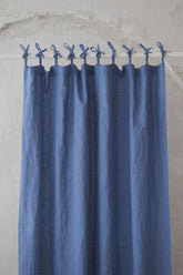Our Denim Blue tie top linen curtain is made from 100% European medium-weight linen, offering a soft, natural drape and a beautifully textured finish. The denim blue tone is calm and versatile — slightly muted yet full of character — bringing a relaxed, effortless feel to any interior.