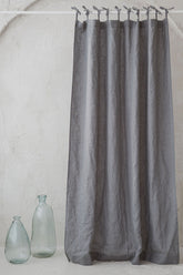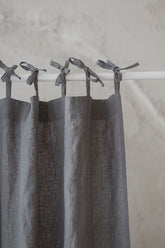 Tie top grey linen curtain